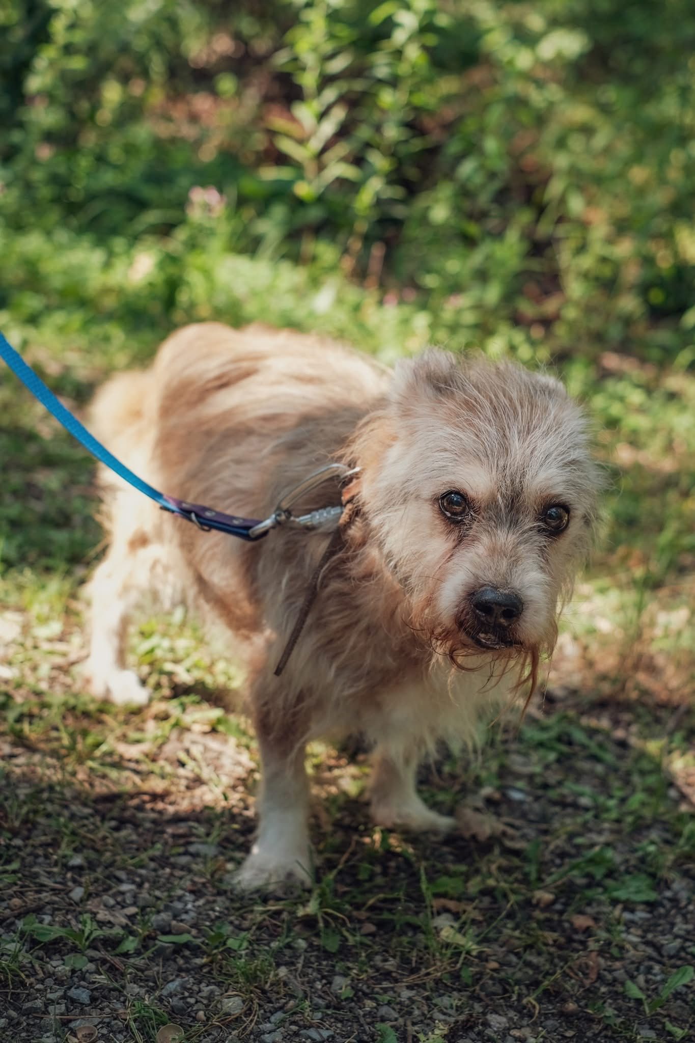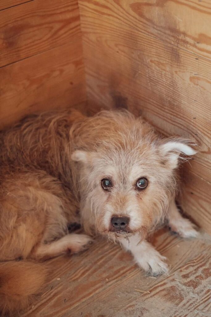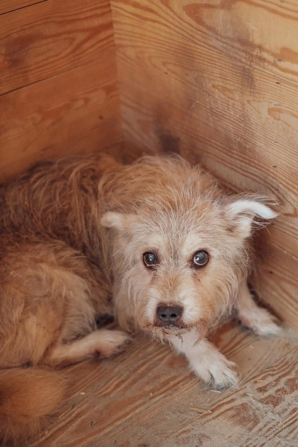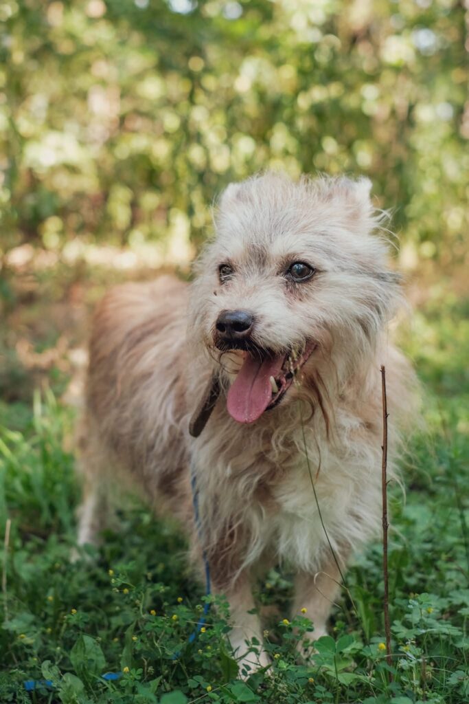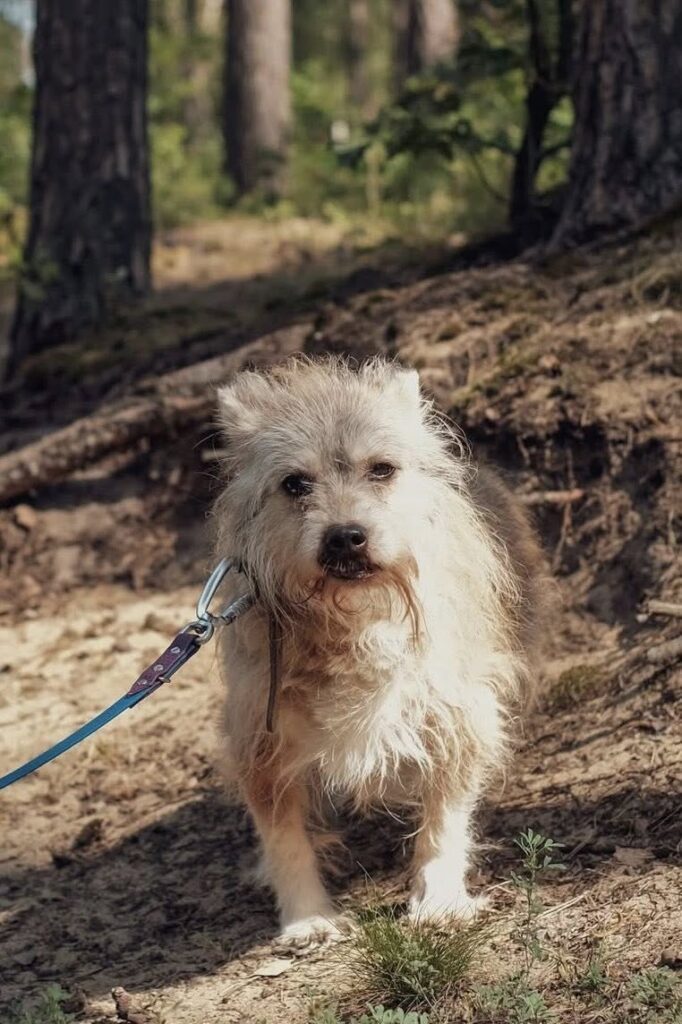 Beżyk trafił do schroniska w opłakanym stanie… cały w kołtunach, z oczami, które mówiły więcej niż tysiąc słów. Widać, że życie go nie oszczędzało. 💔