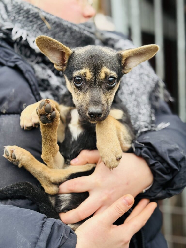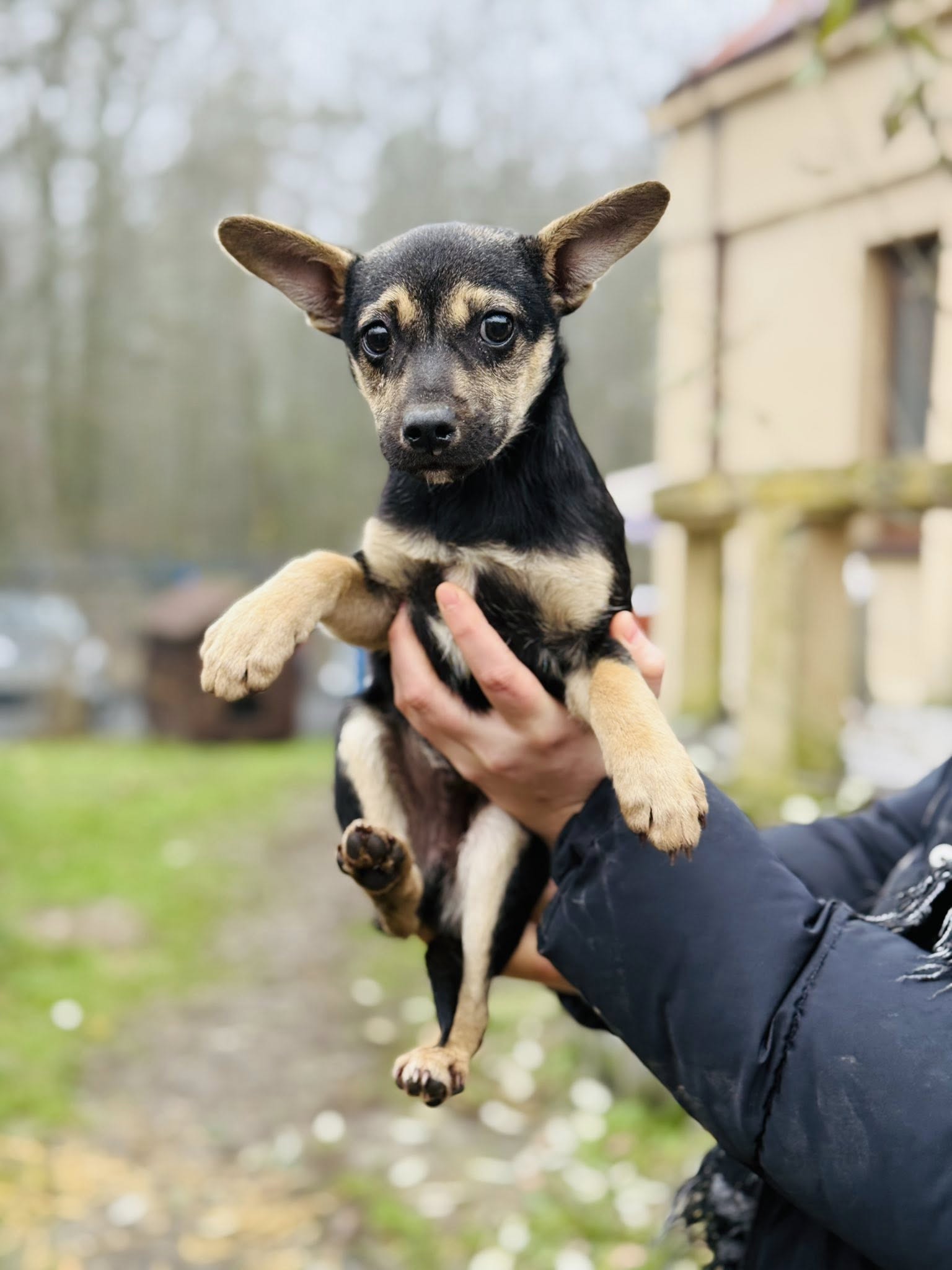 Przyjechał z wiejskiej gromady dzikich psów, wychowany samopas na ulicy w mrozie.