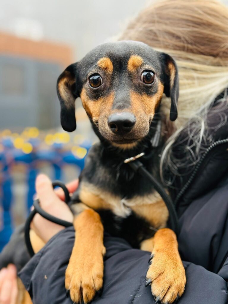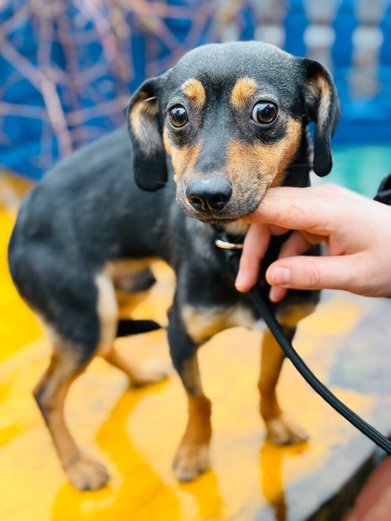Smycz 🐕🦺 – jeszcze niepewna, ale do oswojenia. Chodzenie na smyczy to dla Buziaczka coś, czego dopiero się uczy. W spokojnym miejscu, przy cichej osobie potrafi iść, ale w trudniejszych warunkach potrzebuje wsparcia i czasu. 🤓 To piesek na powolne kroki i cierpliwe „nic się nie stanie”.