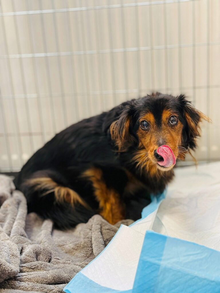 Celestka przyjechała do schroniska nie dość, że przerażona po wyrwaniu z domu, to w ogromnym cierpieniu ze względu na zaawansowane ropomacicze. 🤕