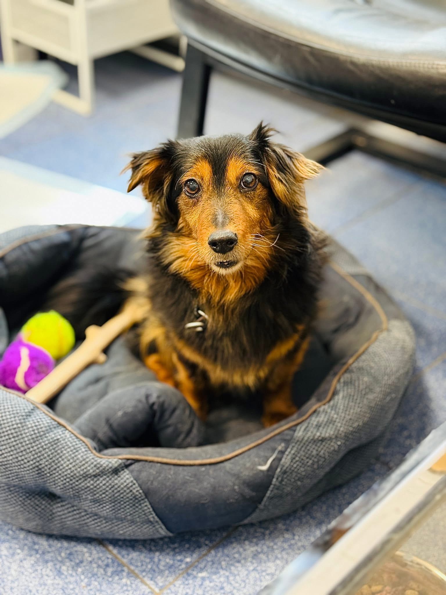 Mieszka w biurze schroniska, a pracownicy stali się jej przyjaciółmi, do których przychodzi z maślanymi ślepkami po głaski. 🥹