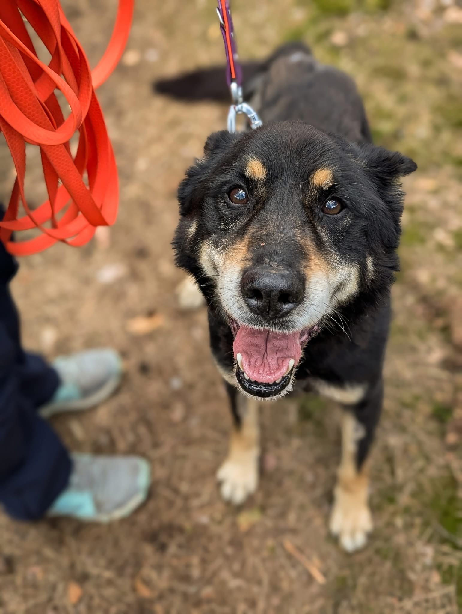 , w którym można się zakochać. Na spacerach jest zainteresowany innymi psami, potrafi do nich pociągnąć, te ciche i spokojne potrafi ładnie minąć, tym co mają coś do powiedzenia potrafi się odszczeknąć.