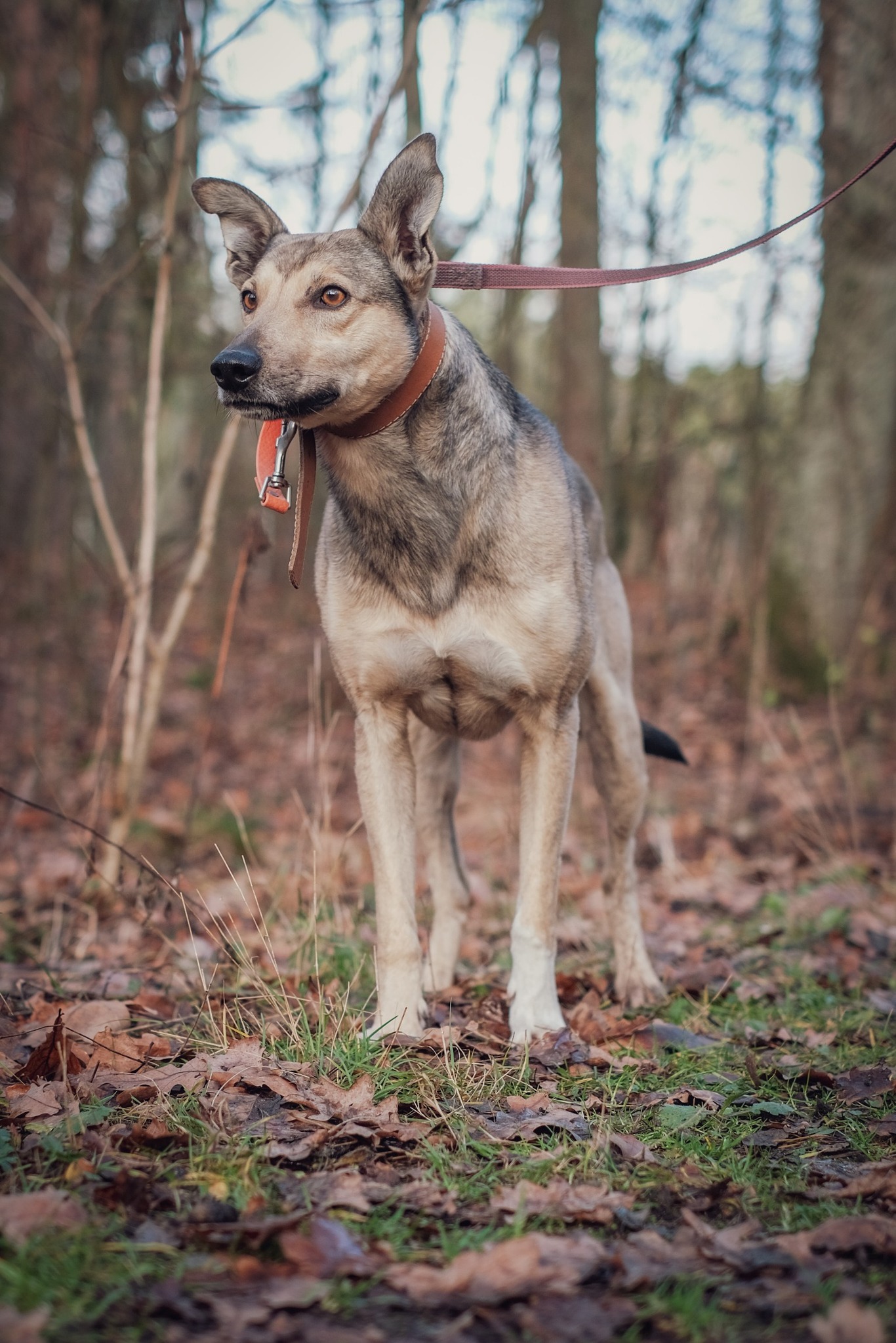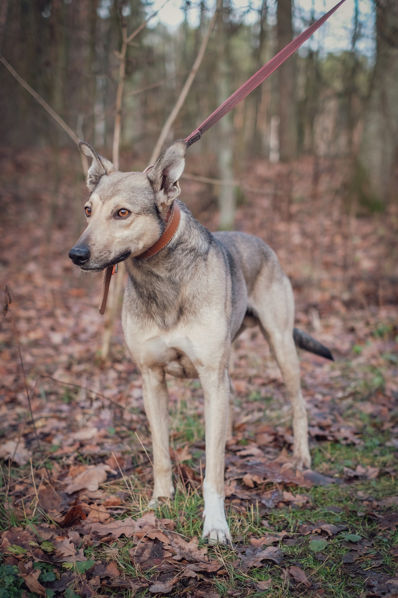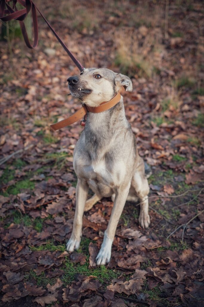 Długopis to pies w typie charta – smukły, elegancki, o pięknym szaro-brązowym umaszczeniu, z delikatnie wilkowatymi tonami. ✨