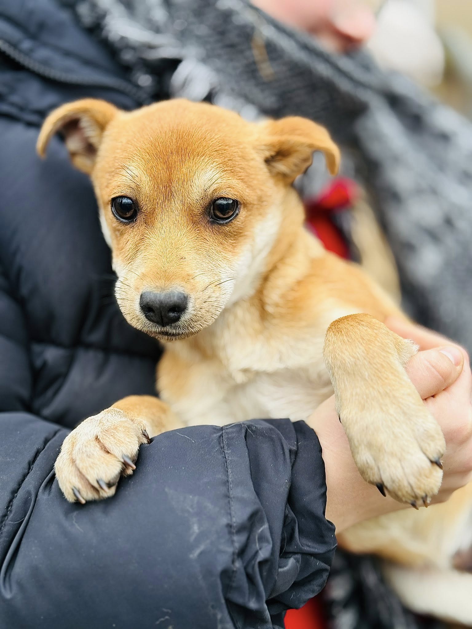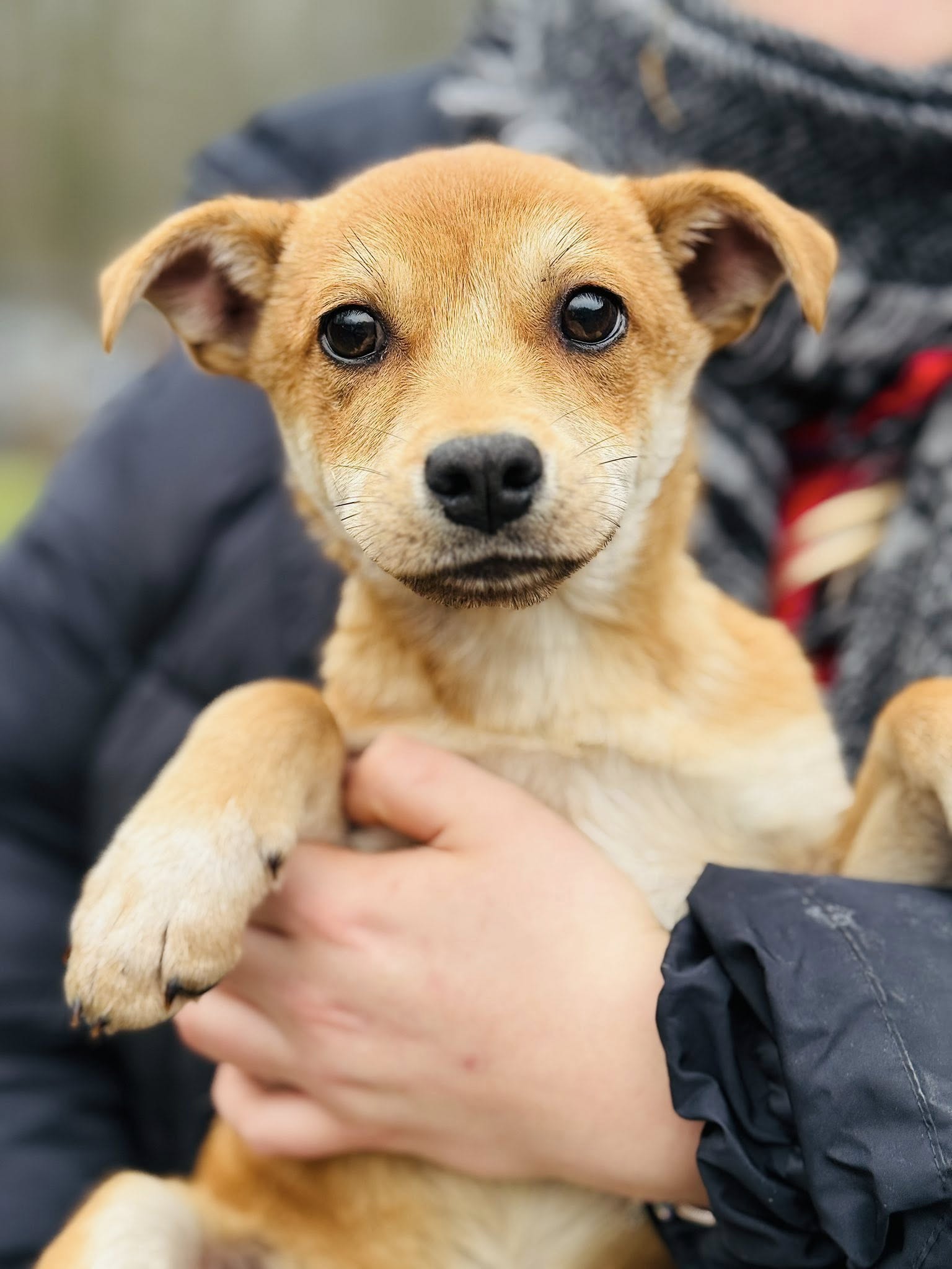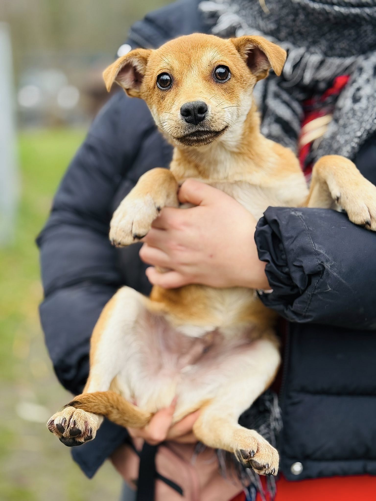 Przyjechał z wiejskiej gromady dzikich psów, wychowany samopas na ulicy w mrozie.