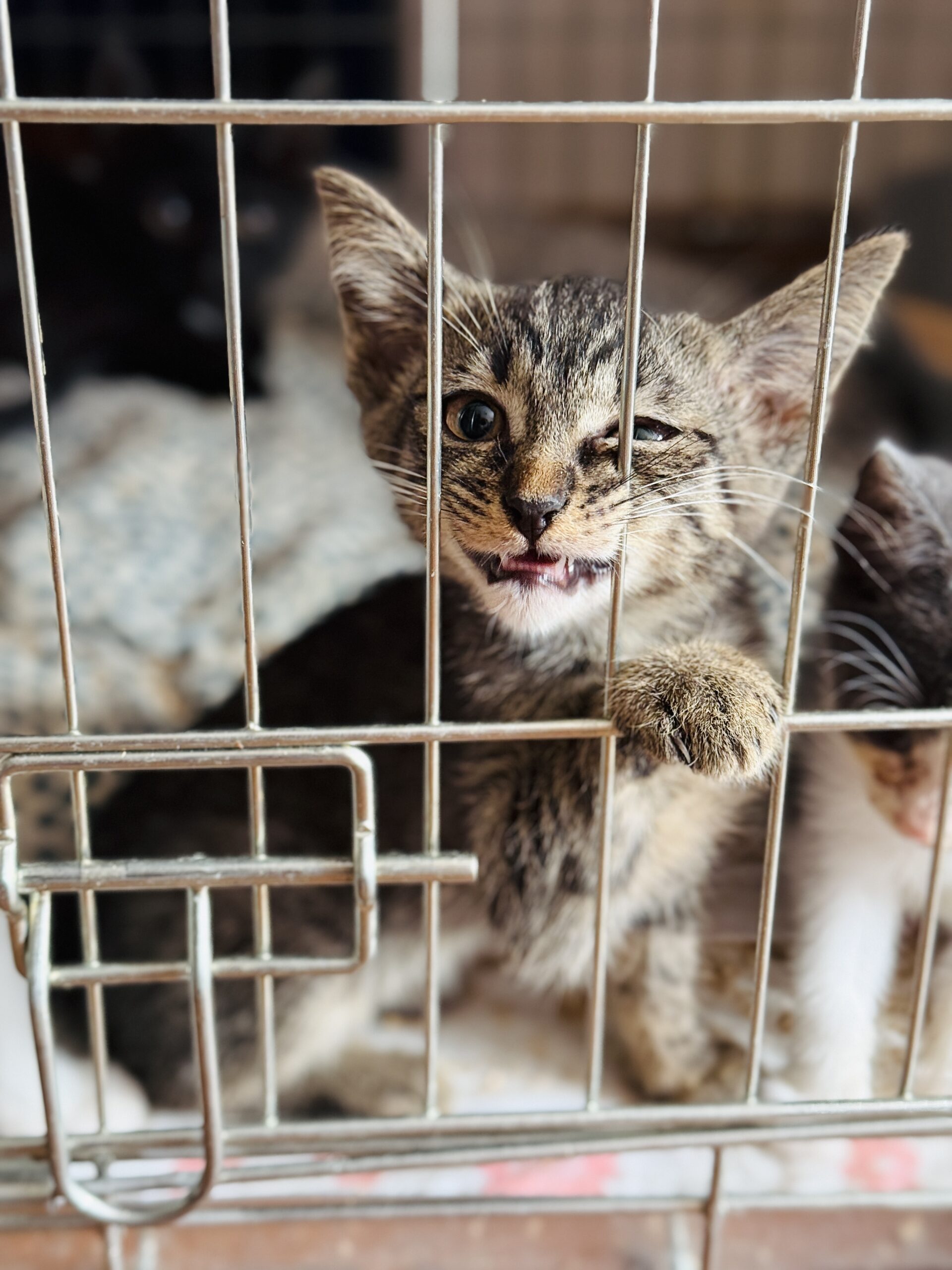 Przeraźliwie płacze przy kratach swojej klateczki… Bardzo chce do ludzi, bardzo chce do domku. 🥺
