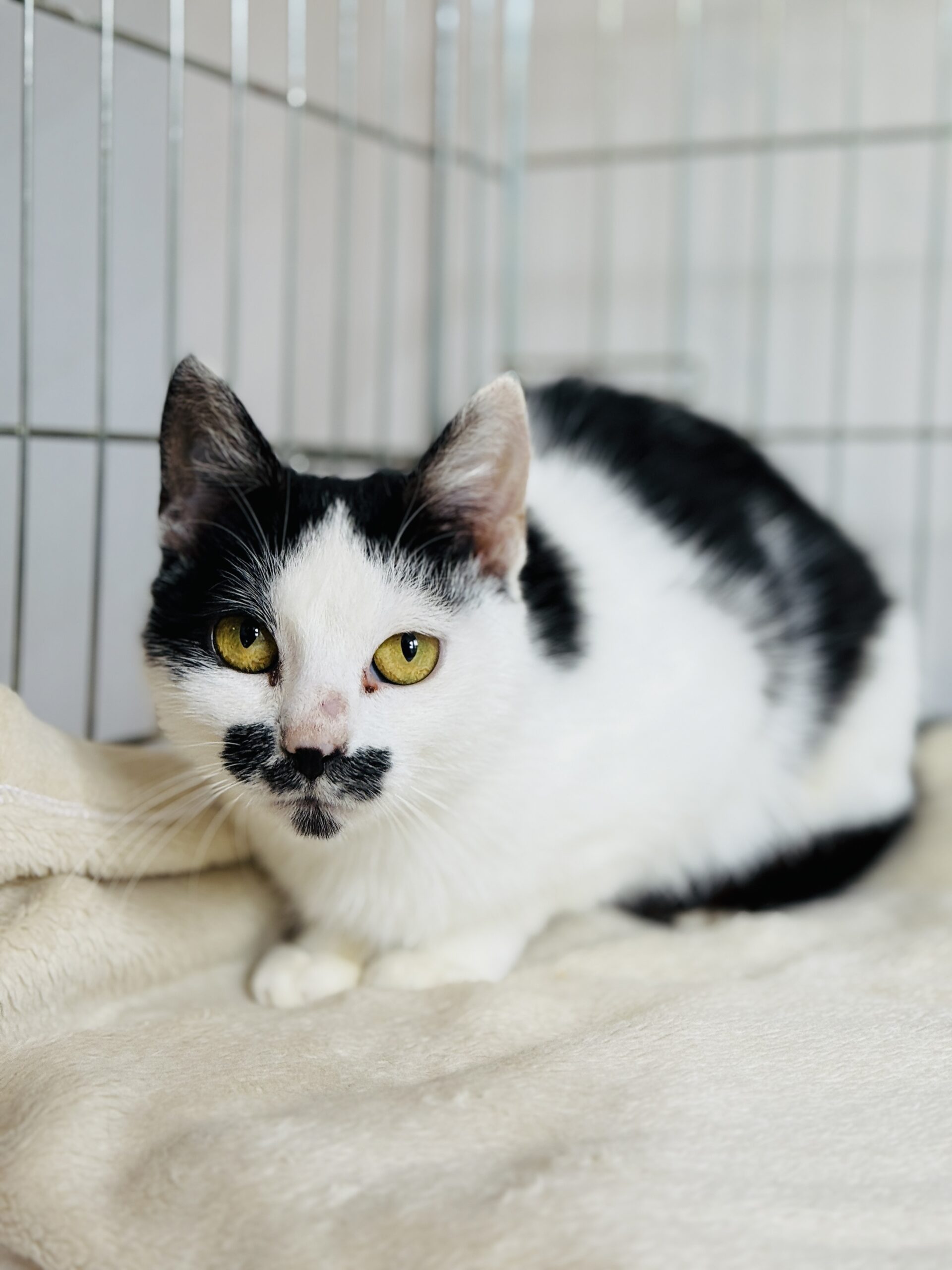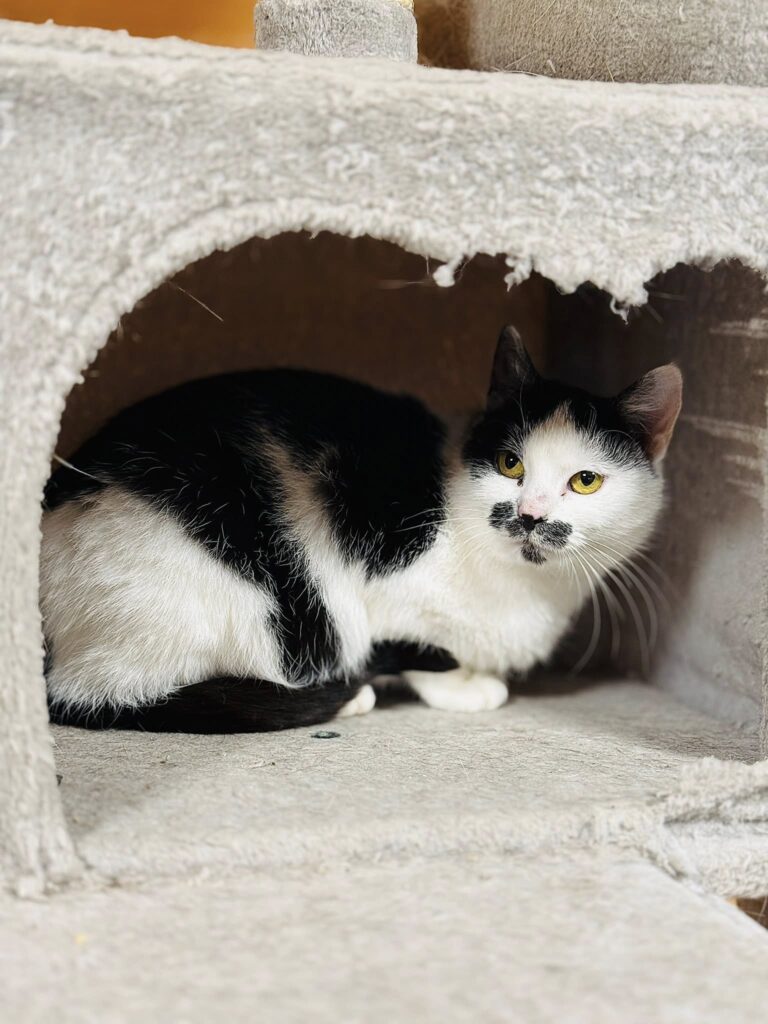 Choć ma wąsika i bródkę, Kreta to śliczna dziewczęca koteczka. 🤍🖤 Gabarytowo jest malutka! Dorosła, jednak zgrabniutka, filigranowa. Waży poniżej 3 kg. 🐭⚖️