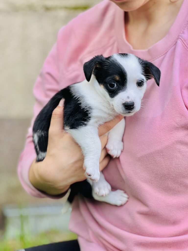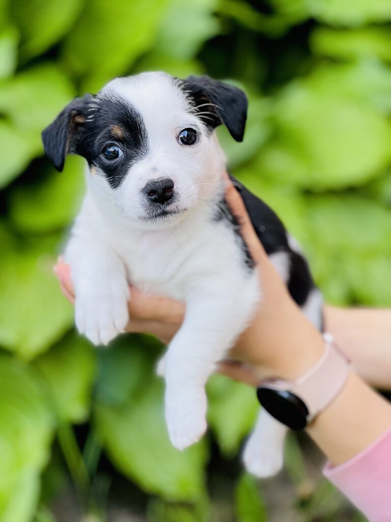 Choć bywa zadziorny (w końcu to jedyny chłopiec z miotu!), jego urokowi nie sposób się oprzeć.