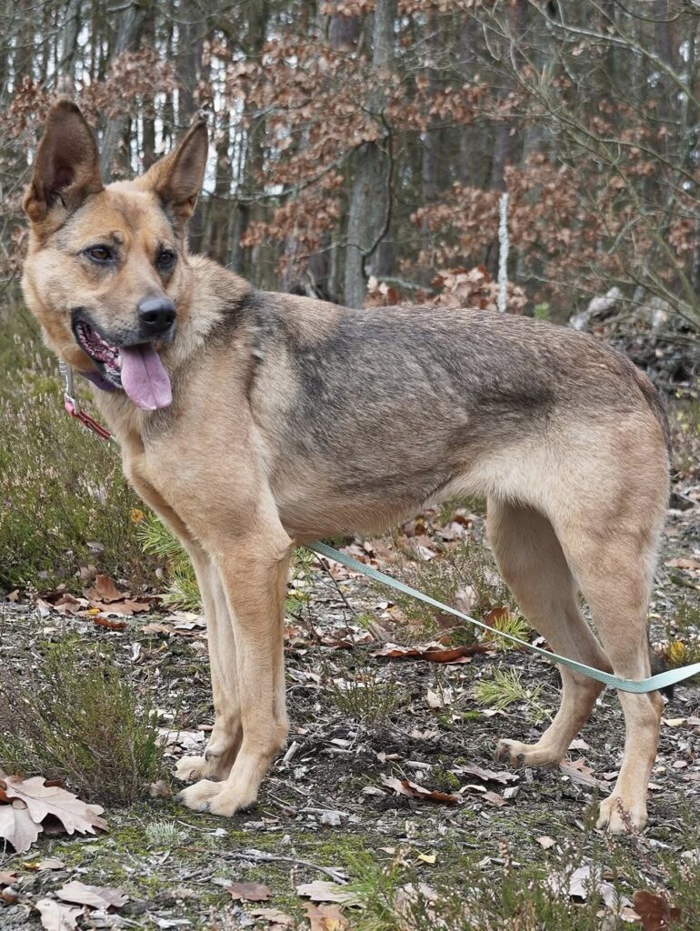 To delikatna i wrażliwa sunia o złotym serduszku i cudownym usposobieniu, mimo odrobiny lęku, jest bardzo spragniona obecności człowieka.
