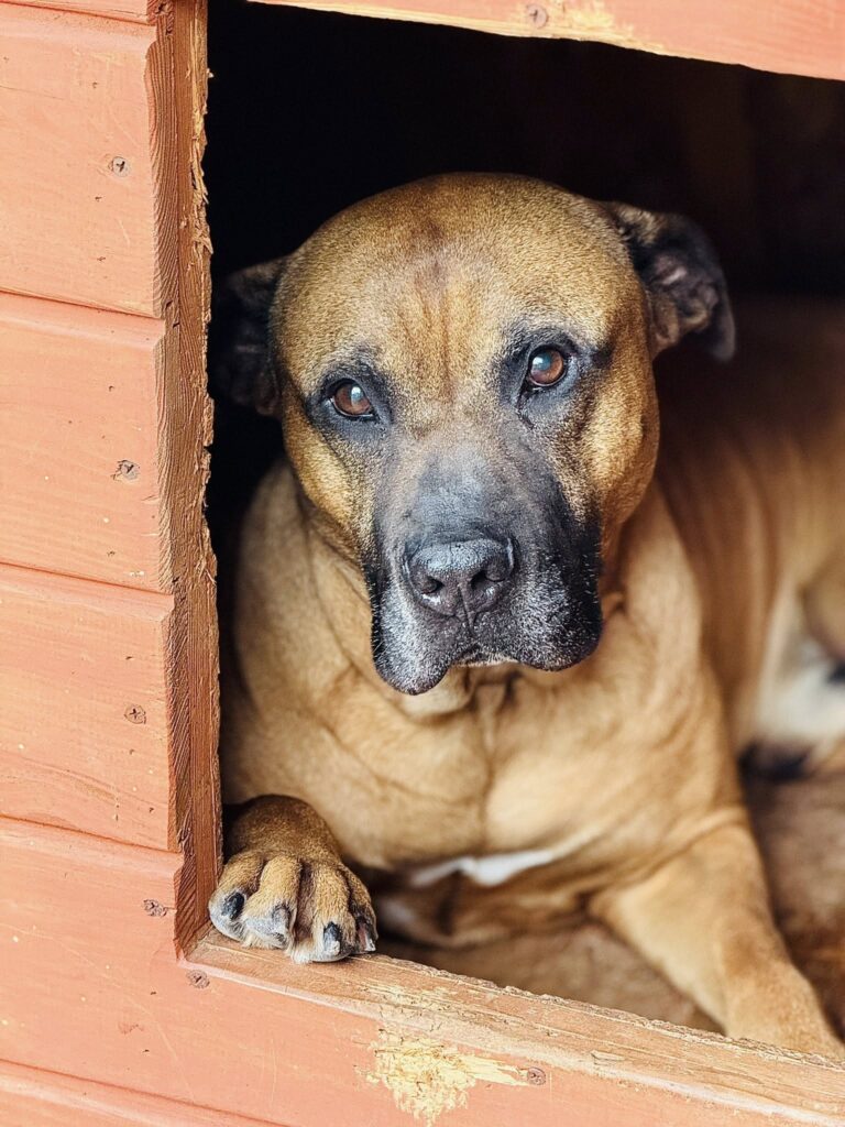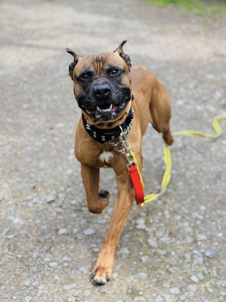 W schronisku mocno przeżywa zamknięcie i brak ruchu, przez co bywa nadpobudliwy i zachowuje się jak słoń w składzie porcelany.